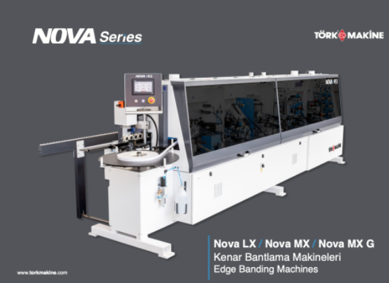 Nova LX kenar bantlama makinesi, standart olarak; Anti tutkal ünitesi, ön freze ünitesi, testere ünitesi, otomatik ayarlı freze ünitesi, otomatik ayarlı köşe yuvarlama (rounder) ünitesi, radyüs kazıma ünitesi, tutkal kazıma ünitesi, polisaj ünitesi ve kanal açma ünitesi sahiptir.